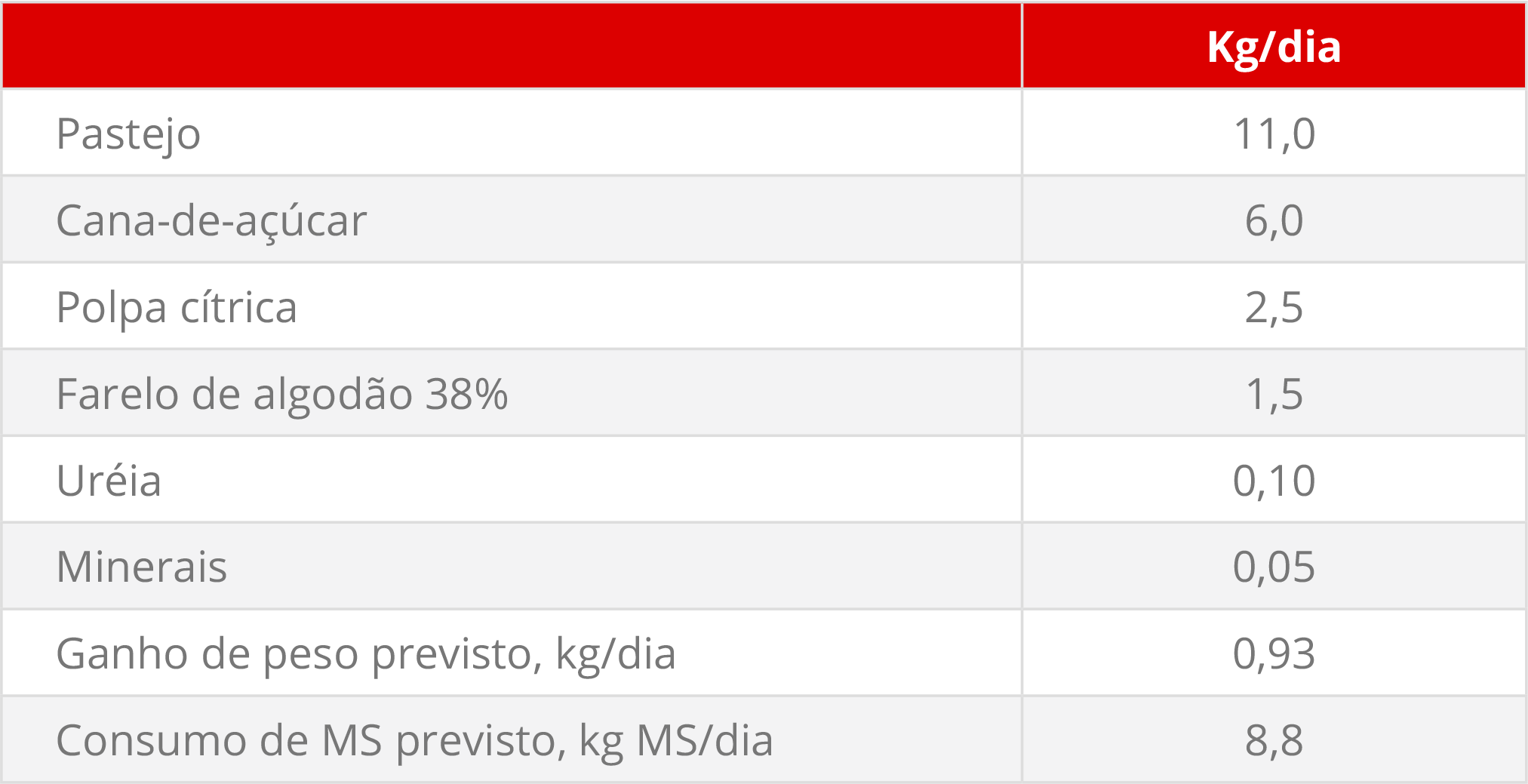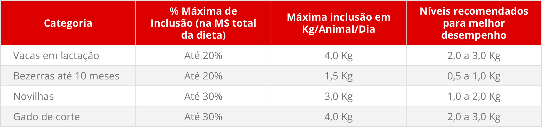 - Disponível em meses estratégicos – escassez de forragens.