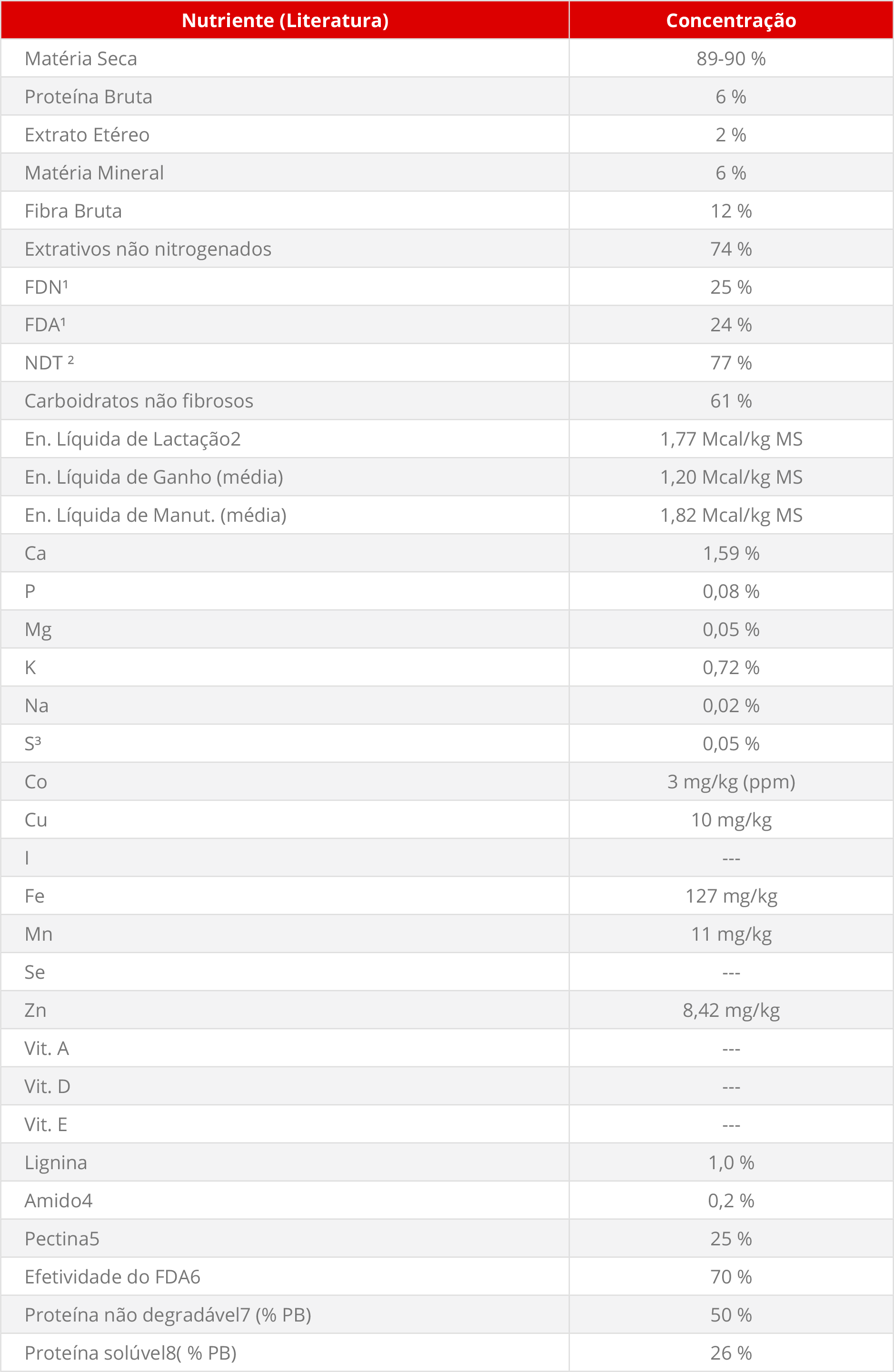 - Alto teor de pectina (25-35%) – carboidrato estrutral cuja degradação é bastante elevada no rúmen.